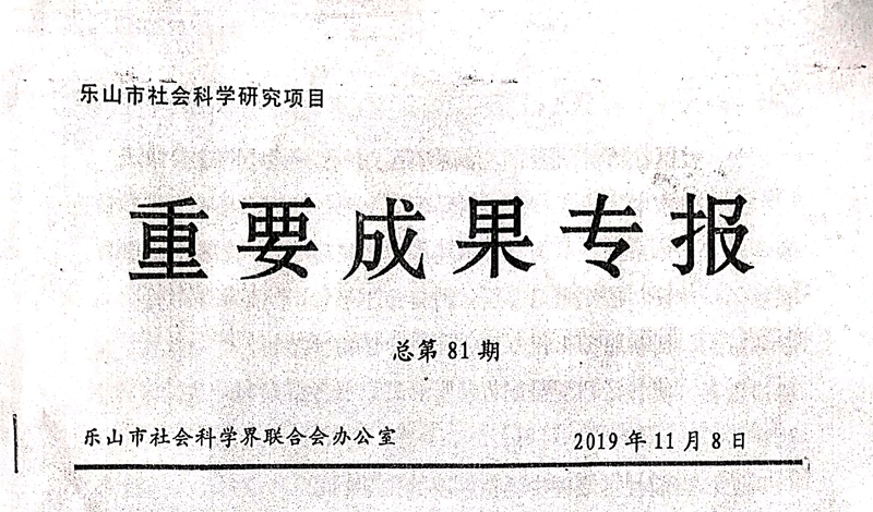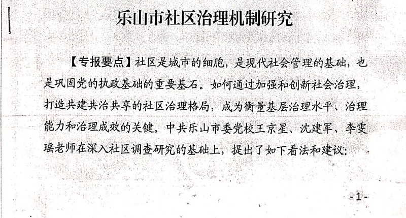 由我校法学教研室王京星老师主持,沈建军、李雯瑶老师共同参与的《乐山市社区治理机制研究》课题,近日作为乐山市社会科学研究重要成果专报,受到市委常委、市政法委书记廖磊同志的肯定性批示。