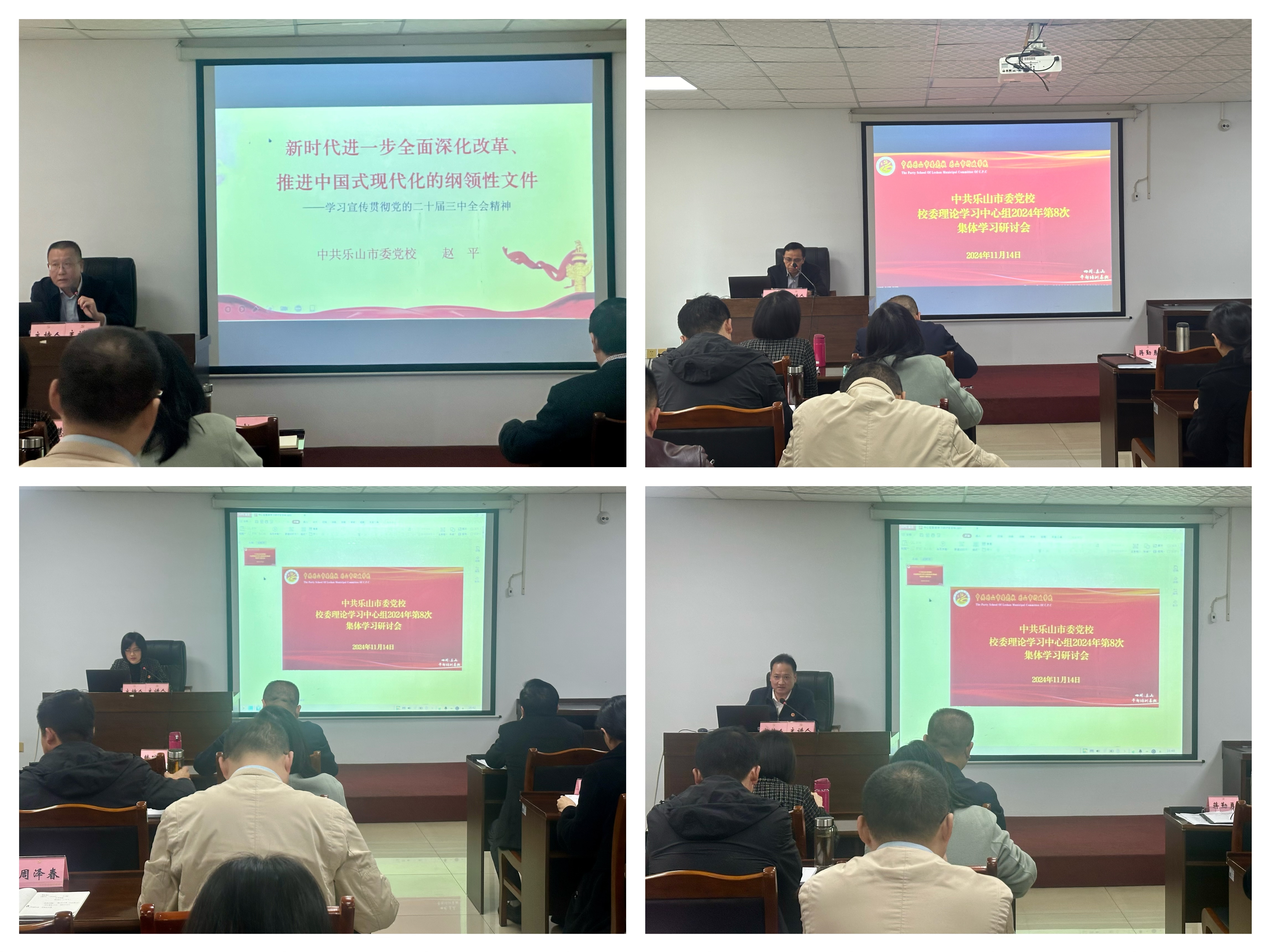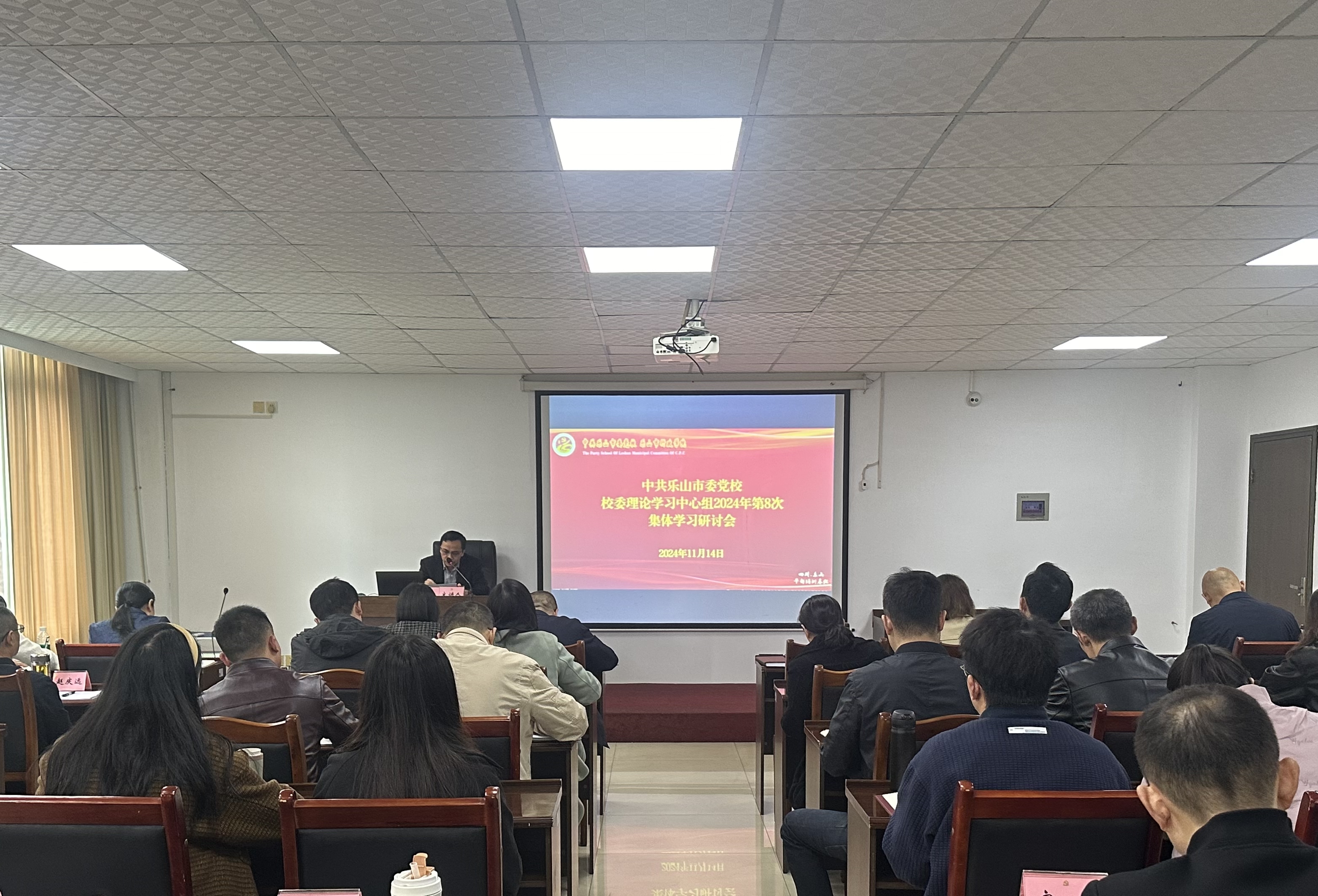 11月14日,乐山市委党校校委理论学习中心组召开2024年第8次集体学习(扩大)会。常务副校长蒋勤勇主持会议,全体校委理论学习中心组成员、县级干部、调研员、中层干部、新进青年教师参加会议。