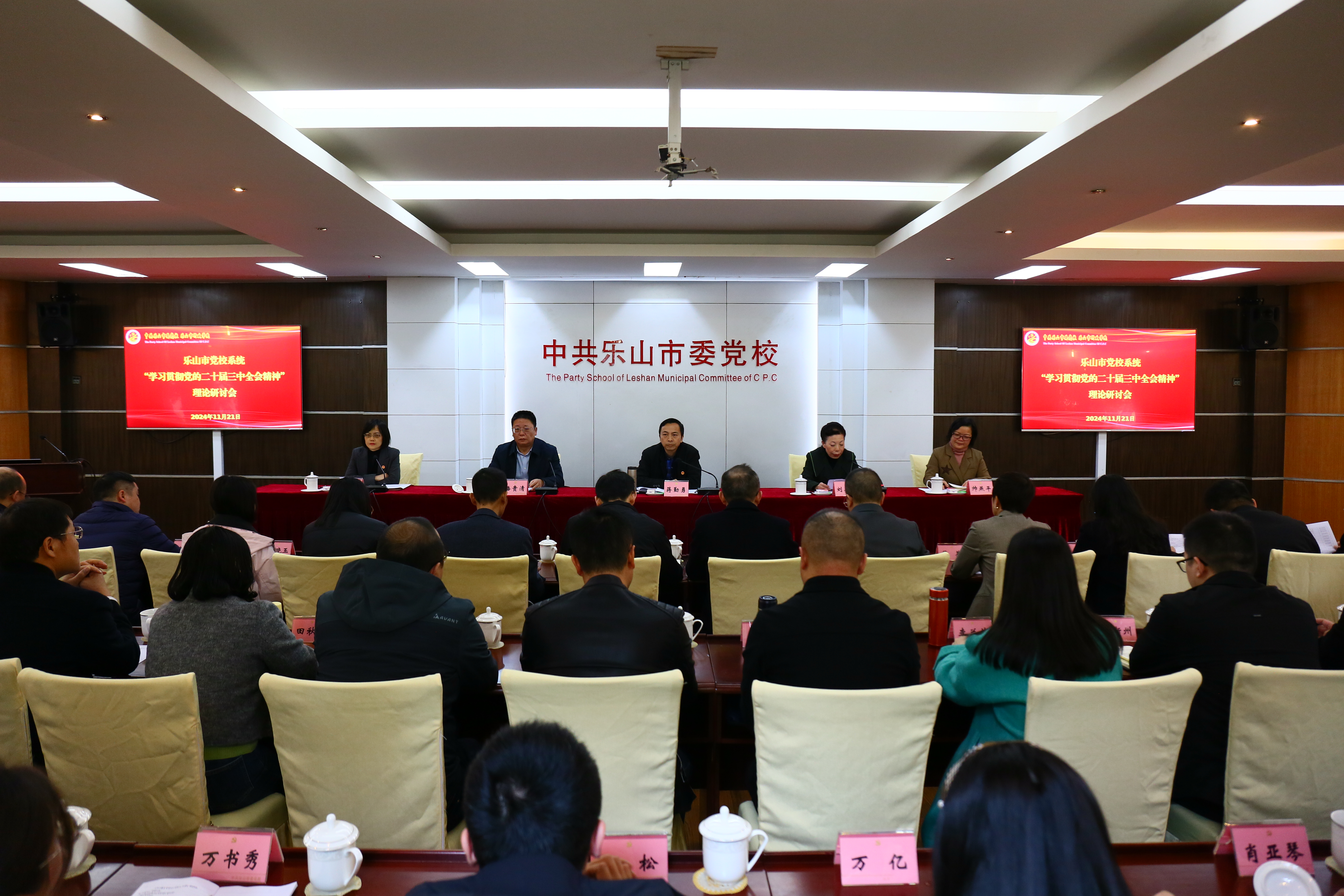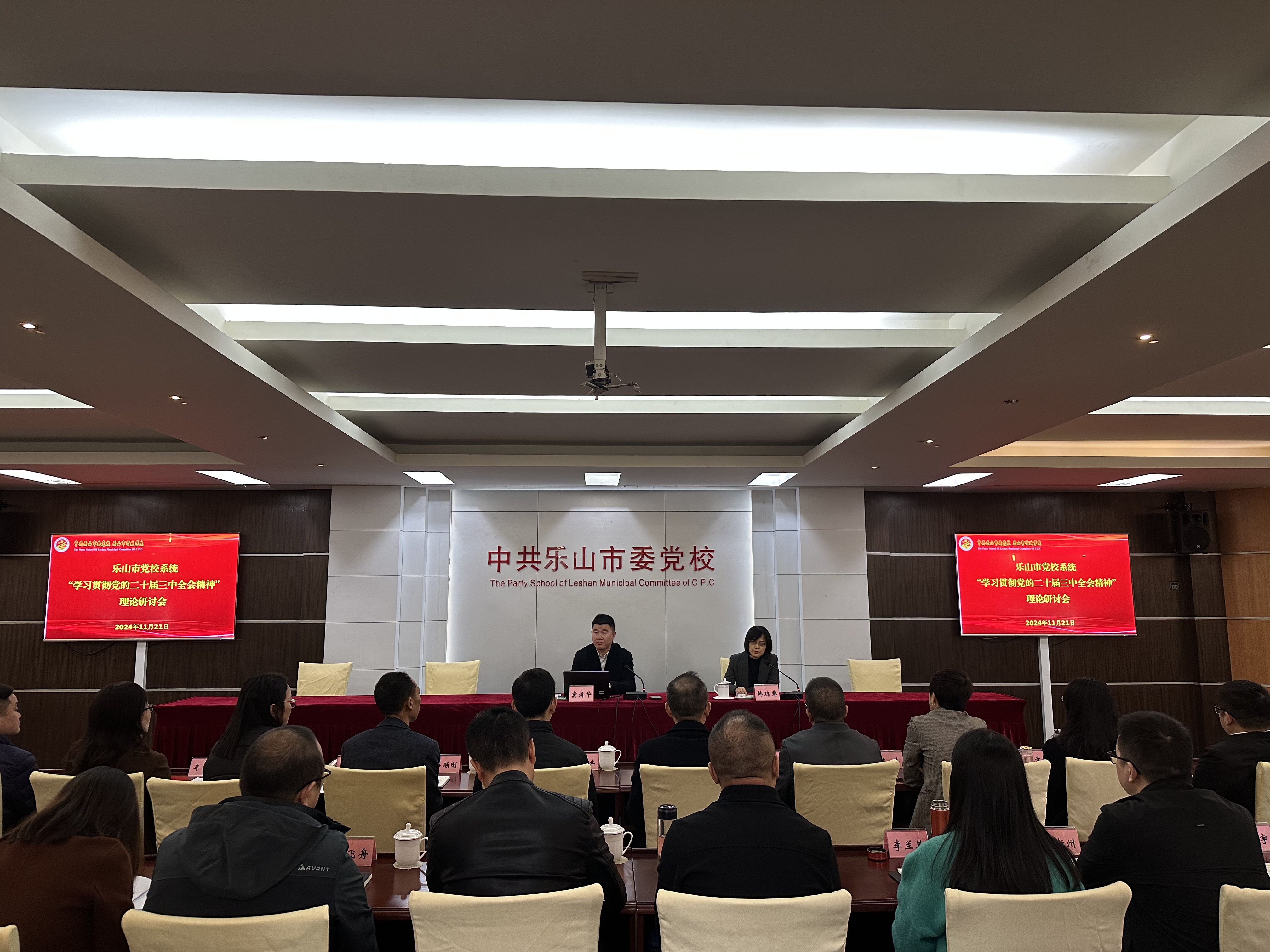 为深入贯彻落实党的二十届三中全会精神,11月21日,乐山市委党校举办全市党校系统“学习贯彻党的二十届三中全会精神”理论研讨会。市社科联主席刘其昕出席开幕式并致辞,市委讲师团团长潘贵清、市委党校常务副校长蒋勤勇出席开幕式并讲话。会议由市委党校副校长、副教授韩琼慧主持。市委宣传部、市社科联、市委党校相关科室负责人,各县(市、区)委党校常务副校长、分管科研咨政工作副校长、入选论文作者代表等共计90余人参加会议。