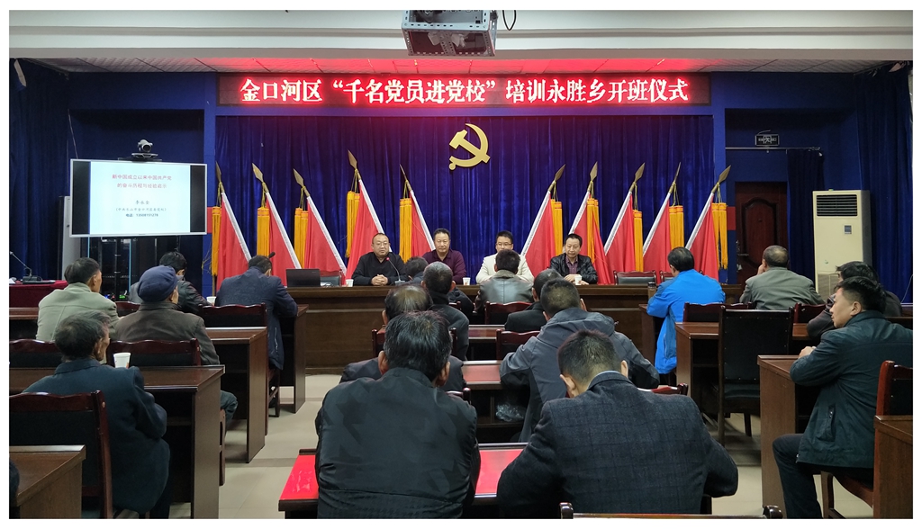 2020年9月27日,金口河区“千名党员进党校”培训班在永胜乡举行开班仪式,标志着金口河区2020年“千名党员进党校”培训全面启动。永胜乡党委书记冉伟云、区委党校副校长廖平安出席开班仪式并讲话,永胜乡党委在家所有党员参加开班仪式。