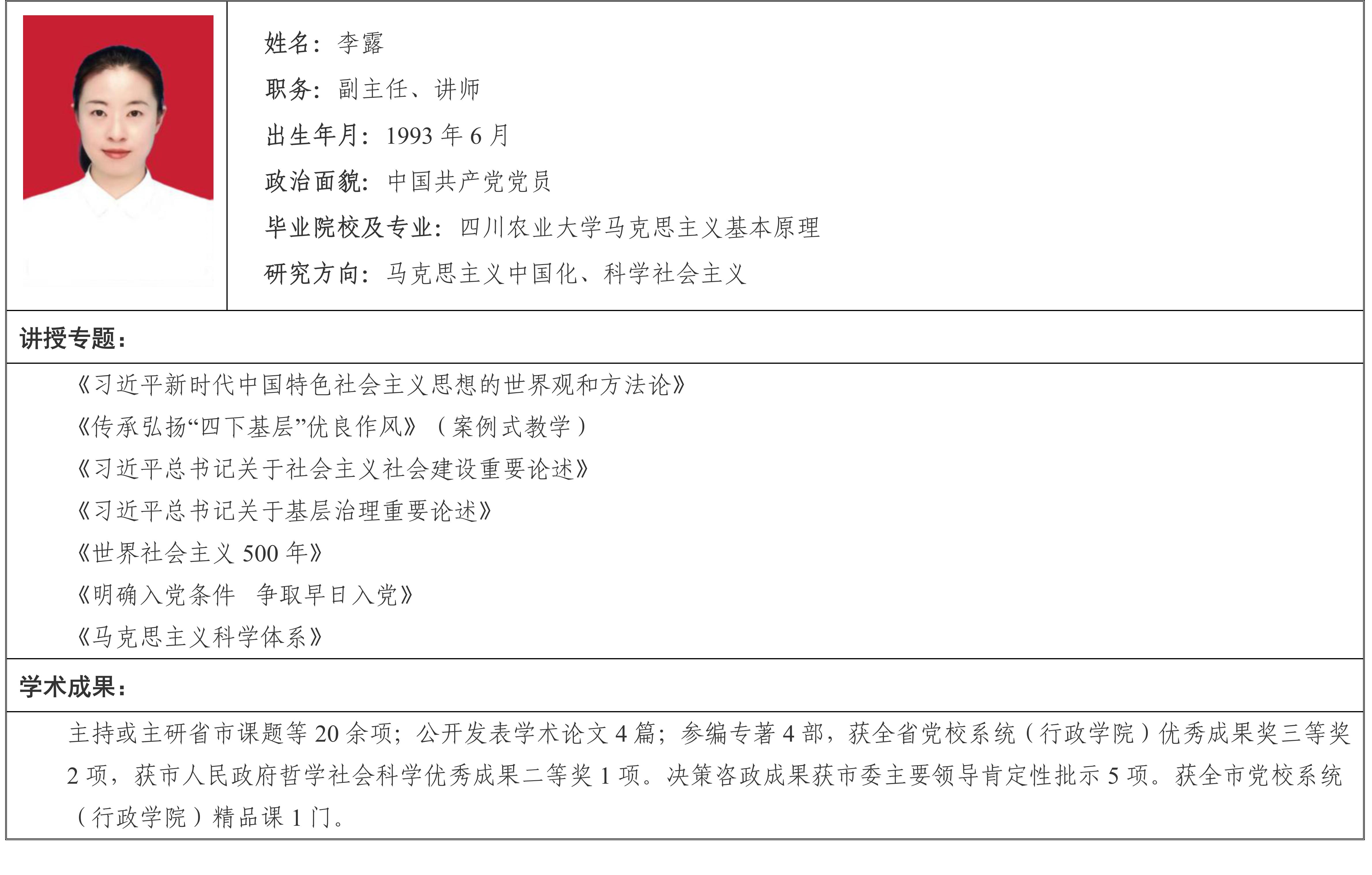> 李露(中共乐山市委党校马克思主义理论教研室副主任、讲师)
